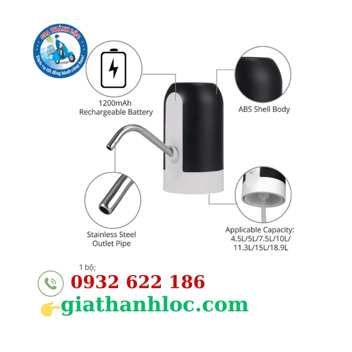 Cùng xem tổng quan các chi tiết và thành phần của thiết bị hút nước GTL cho loại bình nước 20l như hình bên dưới nhé.